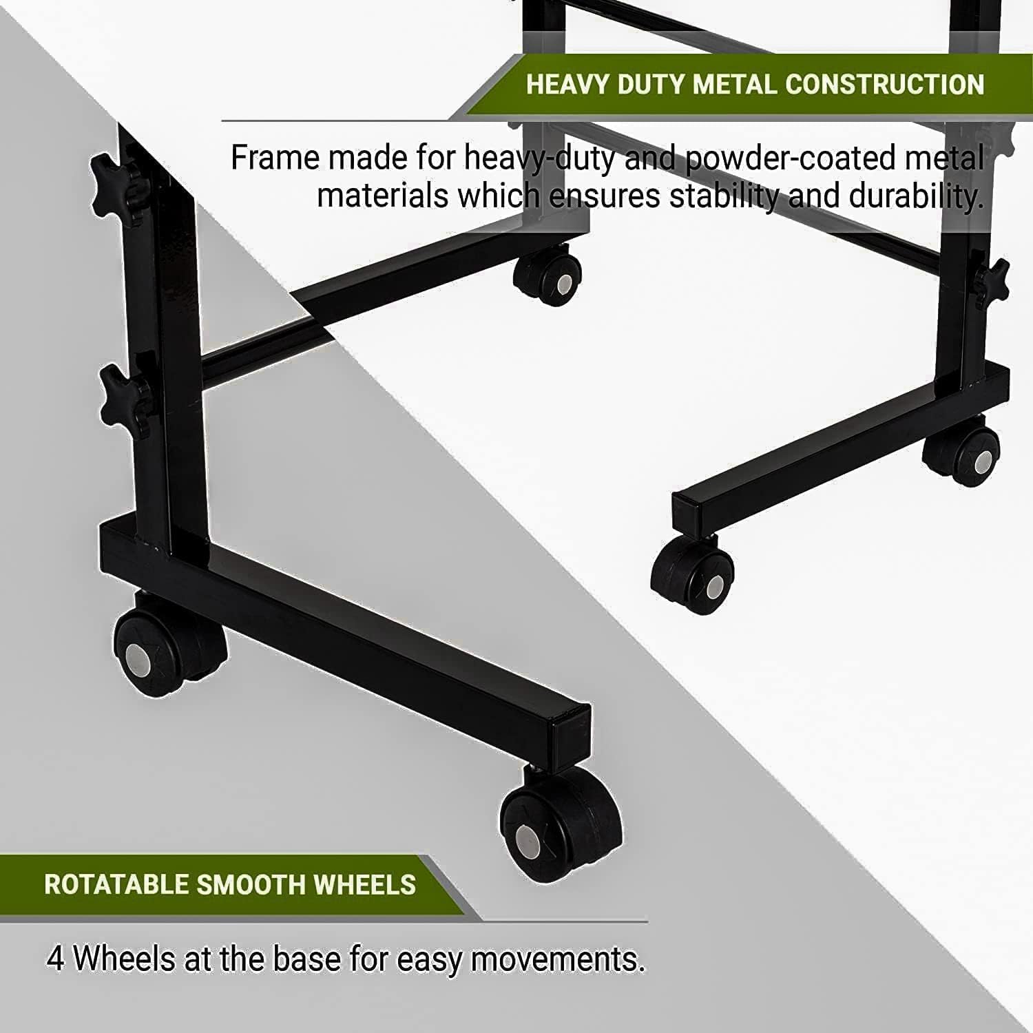 The table comes with four smooth-rolling wheels that make moving it between rooms effortless. Whether shifting it from the living room to the bedroom or adjusting its position near the sofa, the movement feels controlled and stable. This mobility adds to its practicality, especially for users who prefer a flexible workstation rather than a fixed desk.